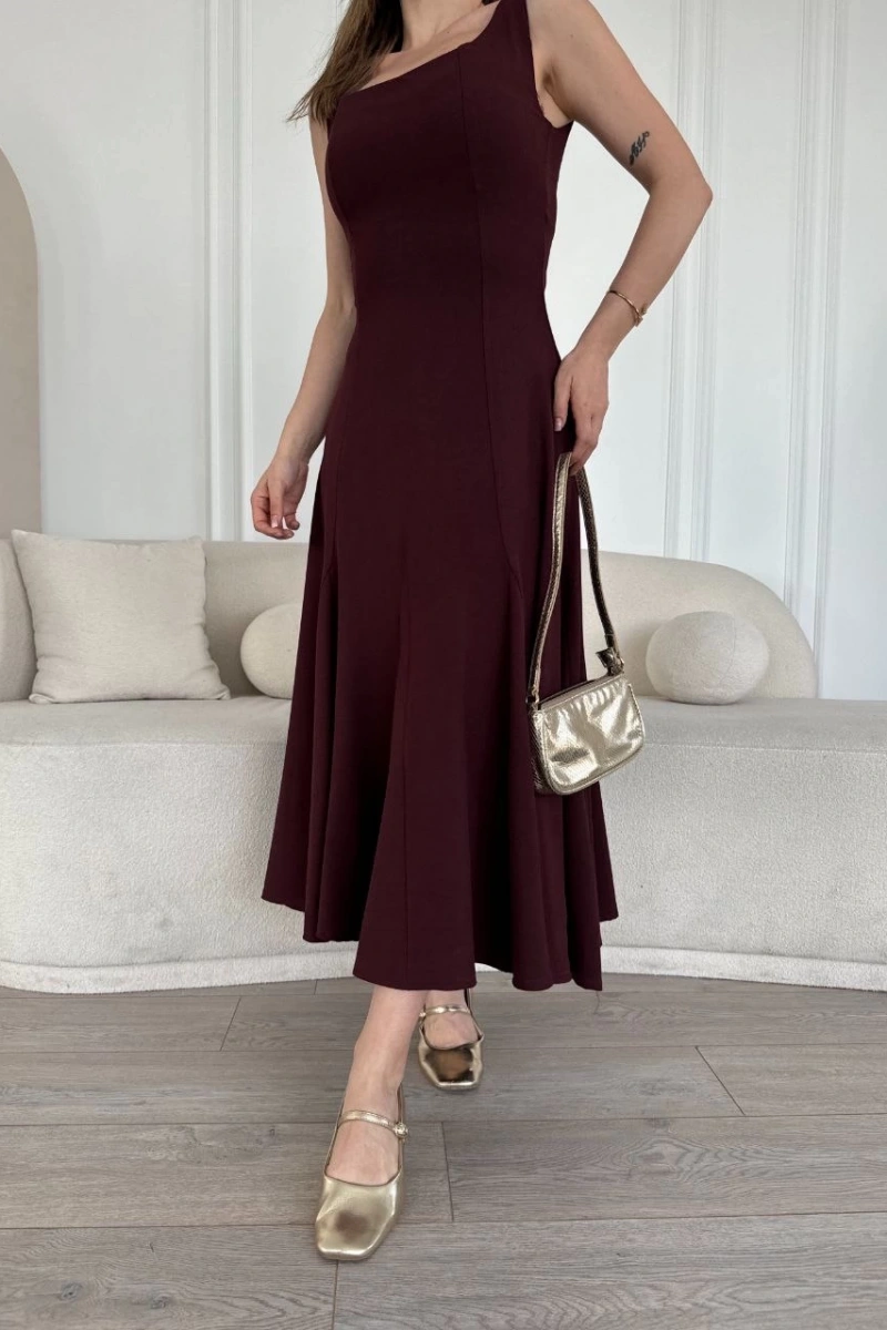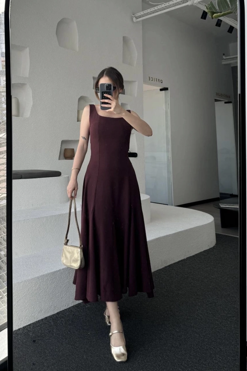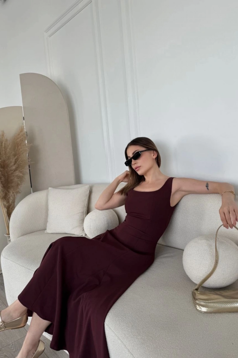 Sırt Dekolteli Kolsuz Uzun Elbise - Mürdüm