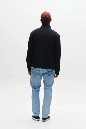 Erkek Lüks Kadife Kumaş Regular Fit Düğmesiz Yaka Gömlek - Siyah
