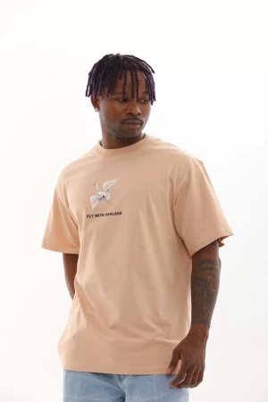 Unisex Kuşgözü Detaylı Baskılı Oversize T-Shirt - Beyaz
