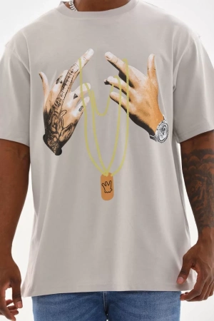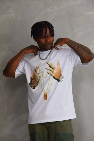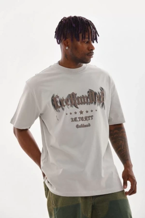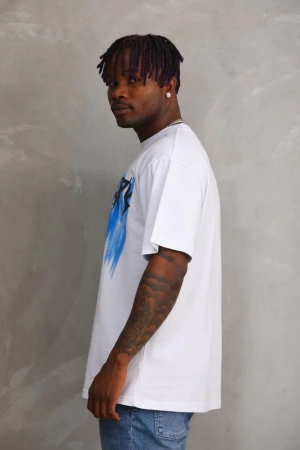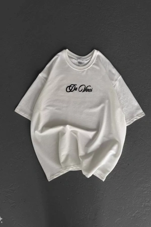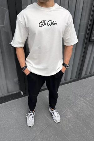 Unisex Baskılı Oversize T-Shirt - Beyaz