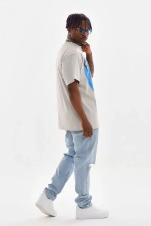 Unisex Baskılı Oversize T-Shirt - Mavi