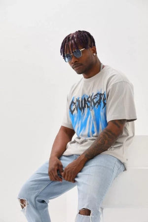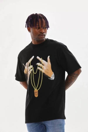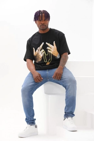 Unisex Baskılı Oversize T-Shirt - Siyah
