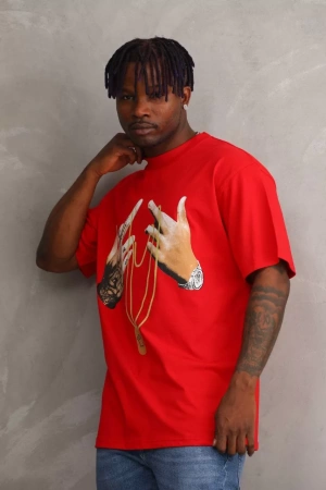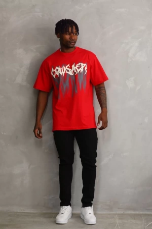 Unisex Baskılı Oversize T-Shirt - Kırmızı