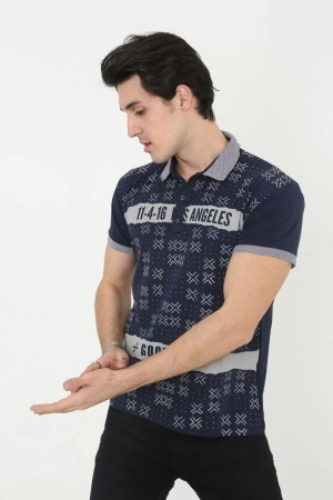 Erkek Yakalı Slim Fit Baskılı T-Shirt - Lacivert