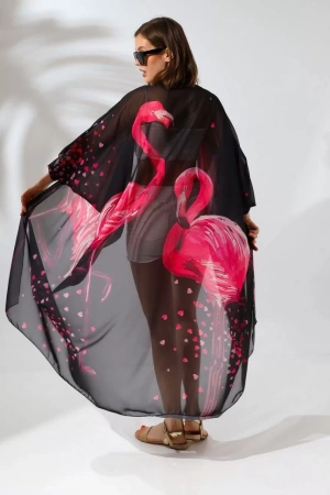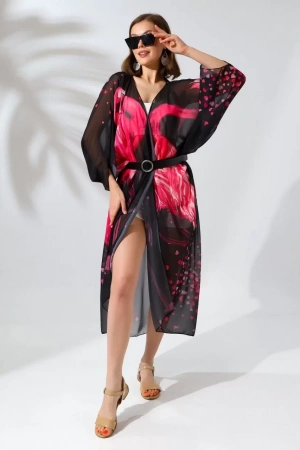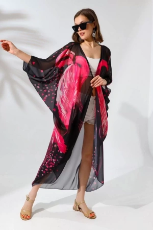Kadın Rahat Kesim Şifon Kimono - Siyah