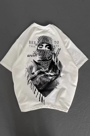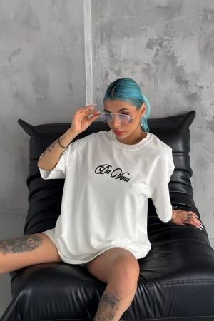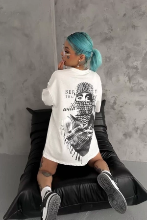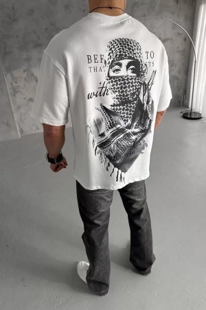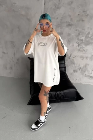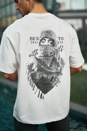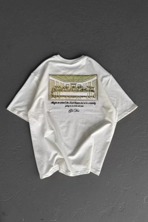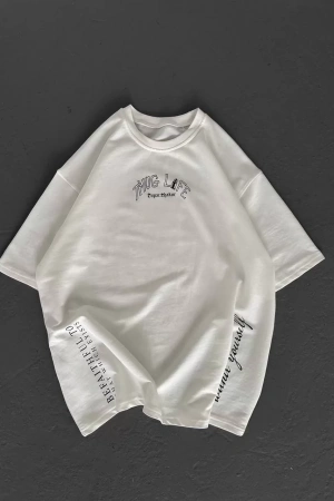 Unisex Baskılı Oversize T-Shirt - Beyaz