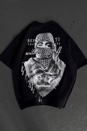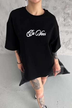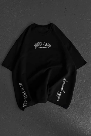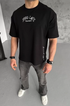 Unisex Baskılı Oversize T-Shirt - Siyah
