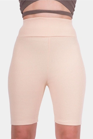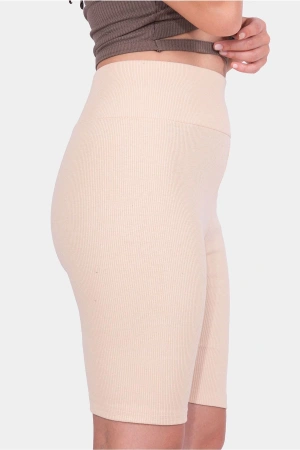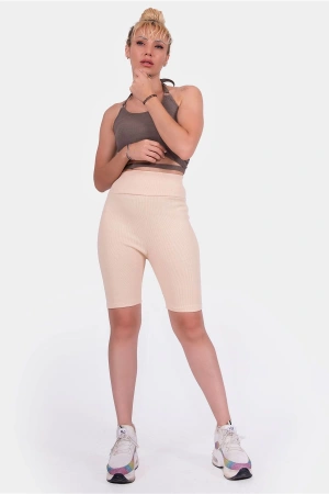 Taş Yüksek Bel Toparlayıcı Fitilli Kısa Şort Tayt