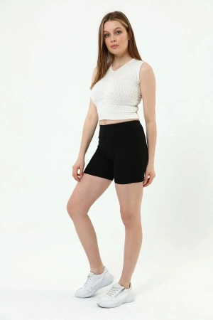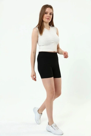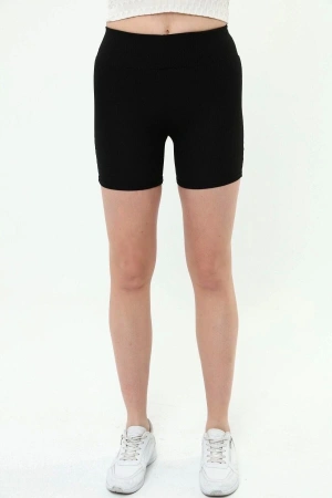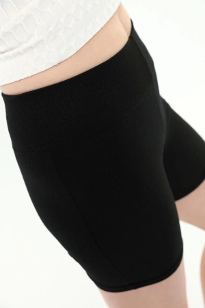 Siyah Yüksek Bel Toparlayıcı Fitilli Kısa Şort Tayt