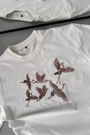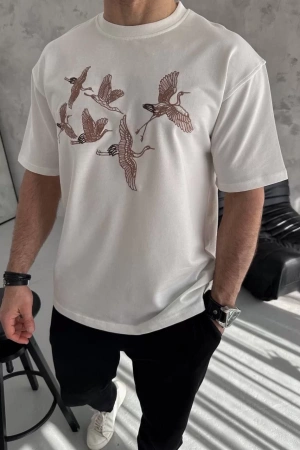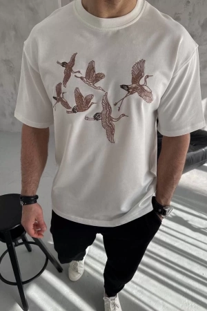 Unisex Nakış İşlemeli T-Shirt - Beyaz