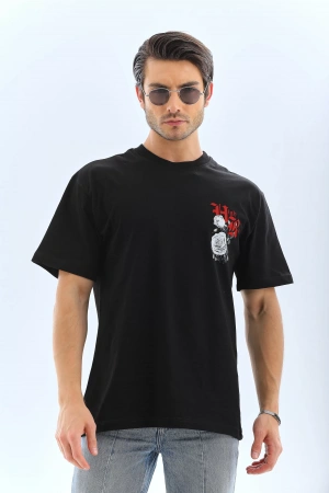 Unisex Baskılı Oversize T-Shirt - Siyah
