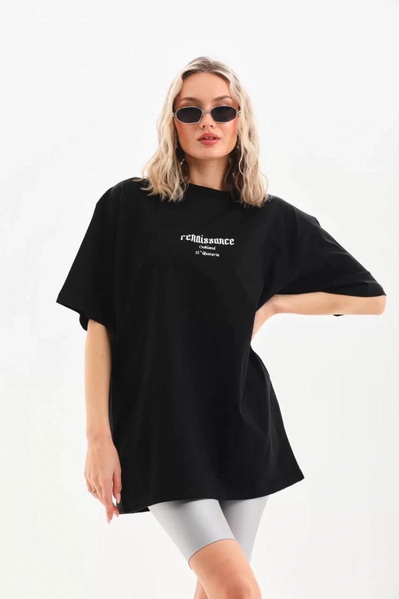 Unisex Baskılı Oversize T-Shirt - Siyah