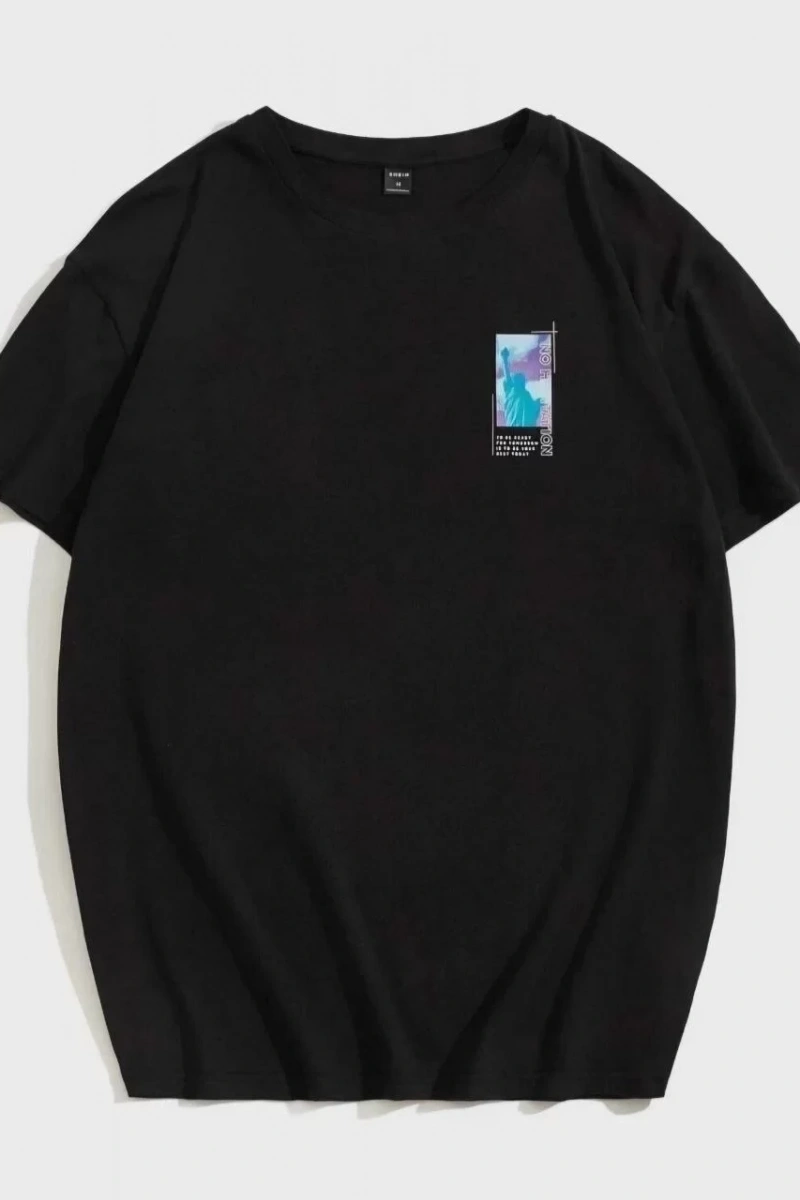 Unisex Baskılı Oversize T-Shirt - Siyah