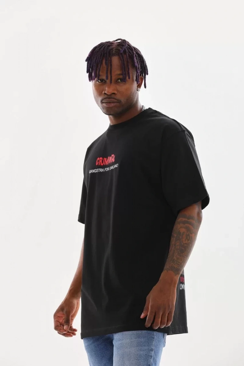 Unisex Baskılı Oversize T-Shirt - Siyah