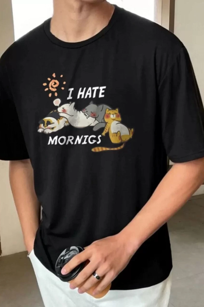 Unisex Baskılı Oversize T-Shirt - Siyah