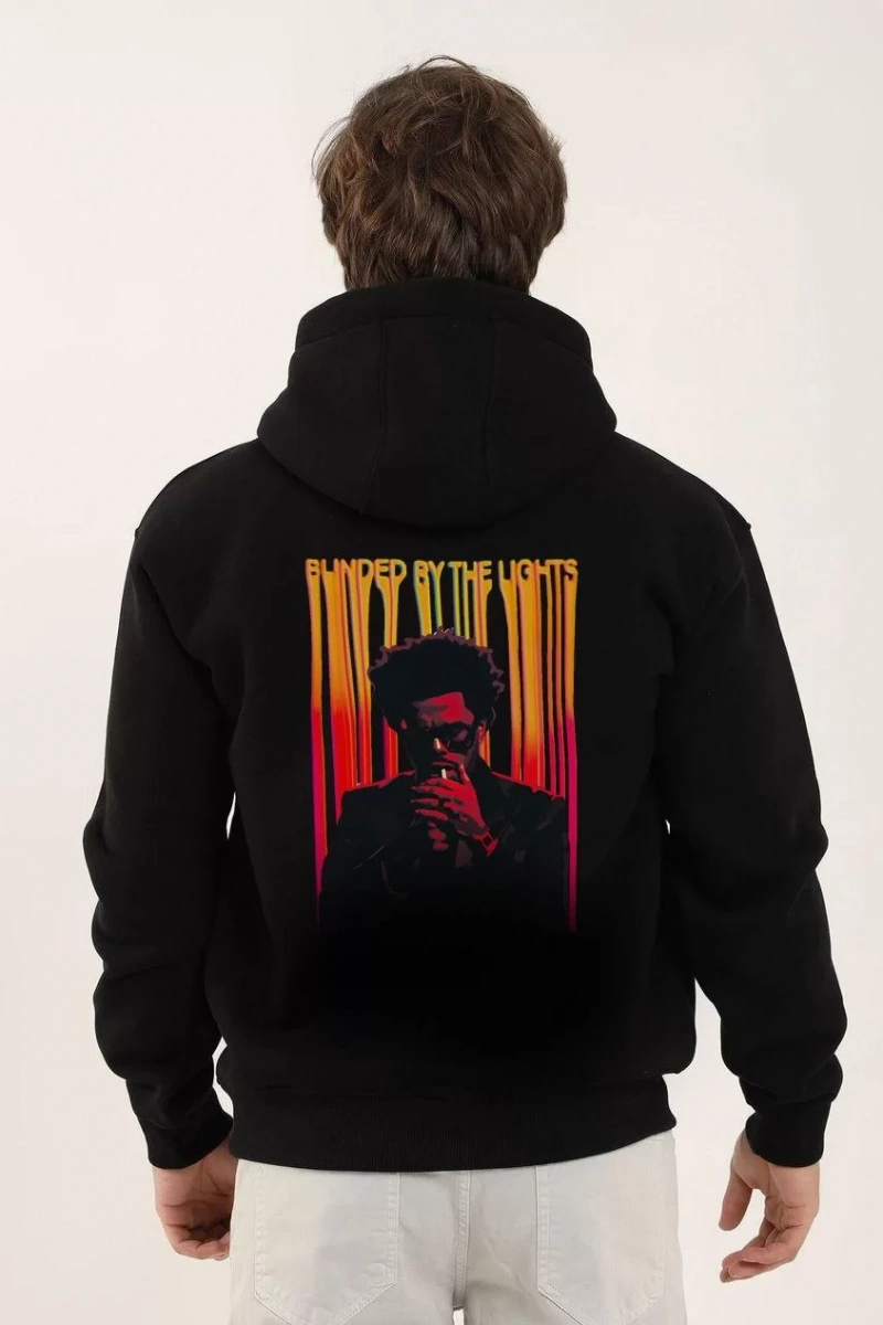 Unisex Baskılı Oversize Üç İplik Kapüşonlu Sweatshirt - Siyah