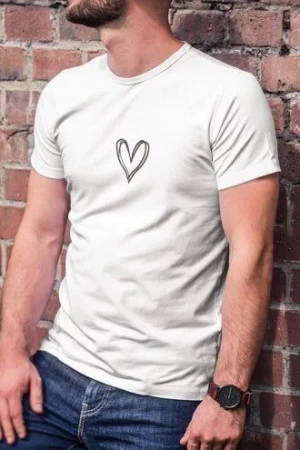 Unisex Bisiklet Yaka Baskılı Oversize T-Shirt - Beyaz