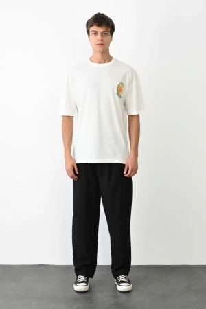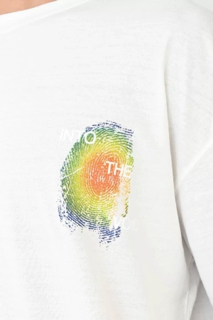 Unisex Bisiklet Yaka Baskılı Oversize T-Shirt - Beyaz
