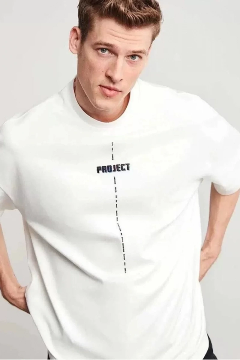Unisex Bisiklet Yaka Baskılı Oversize T-Shirt - Beyaz