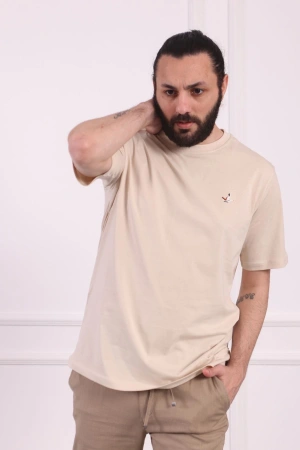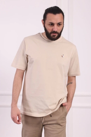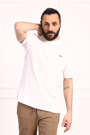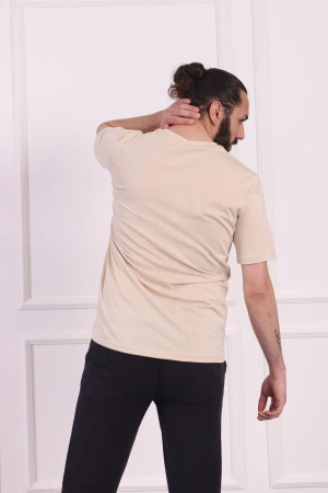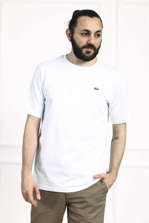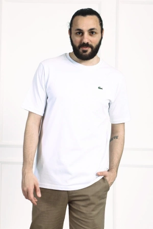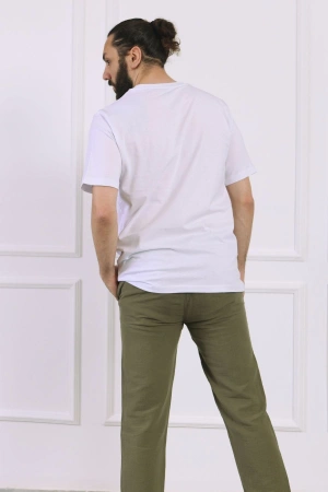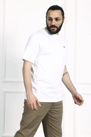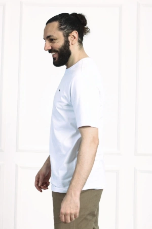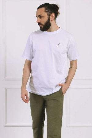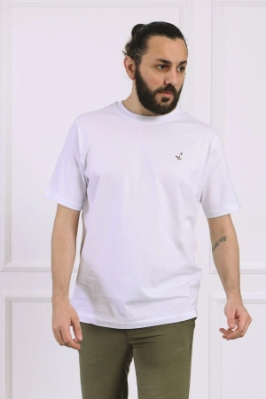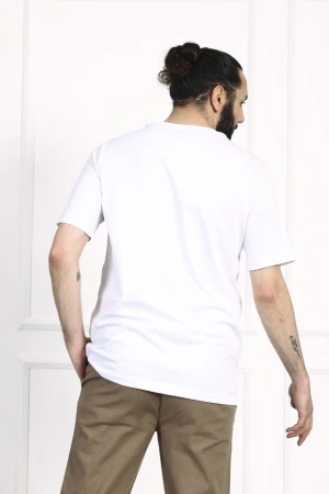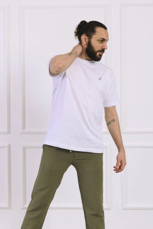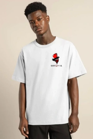 Unisex Bisiklet Yaka Baskılı Oversize T-Shirt - Beyaz