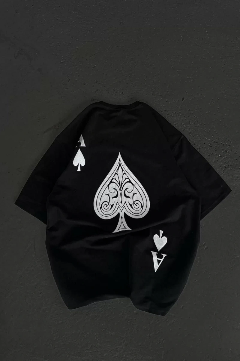 Unisex Bisiklet Yaka Baskılı Oversize T-Shirt - Siyah