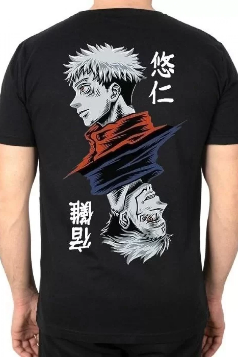 Unisex Bisiklet Yaka Baskılı Oversize T-Shirt - Siyah