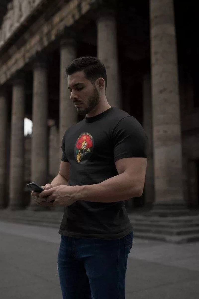 Unisex Bisiklet Yaka Baskılı Oversize T-Shirt - Siyah