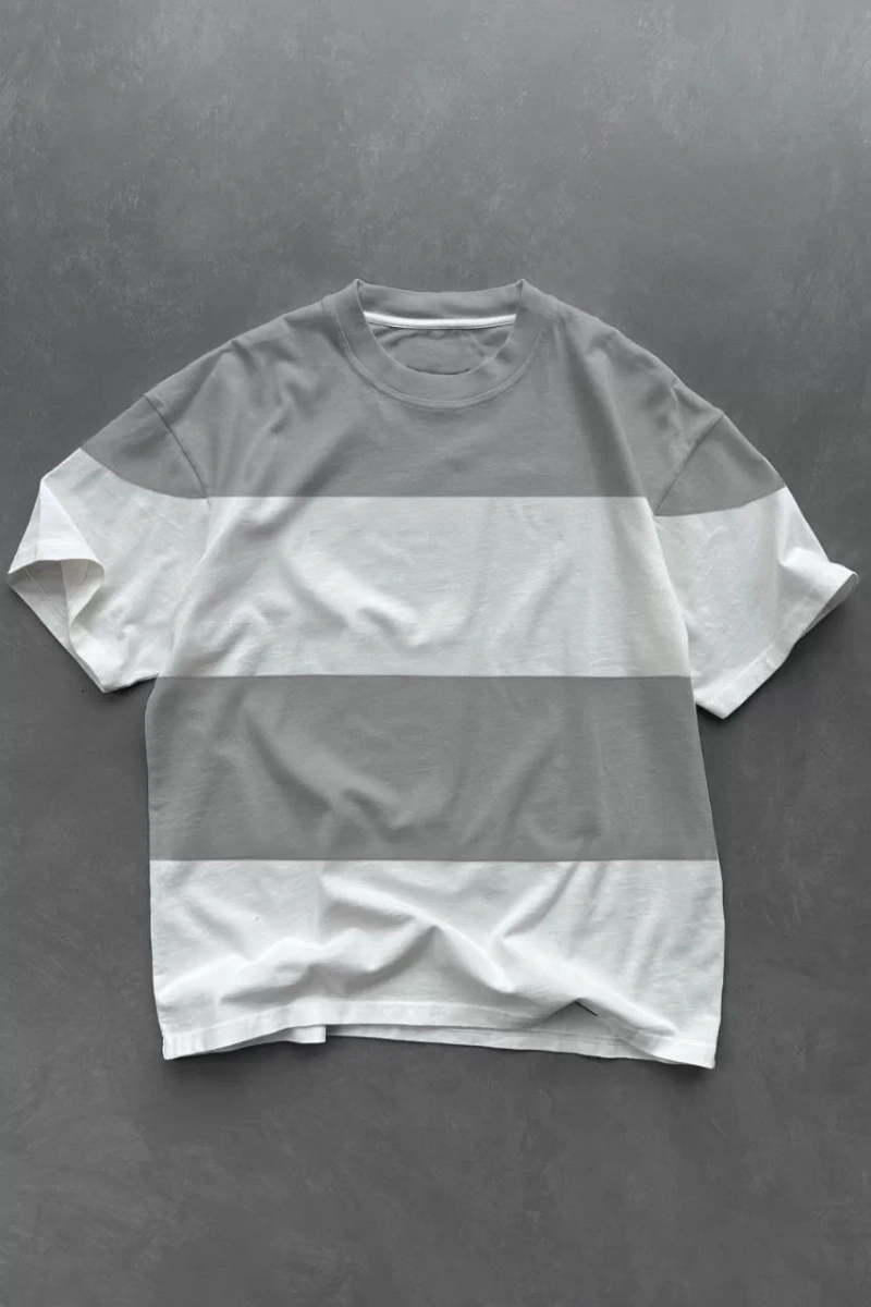 Unisex Bisiklet Yaka Parçalı T-Shirt - Gri