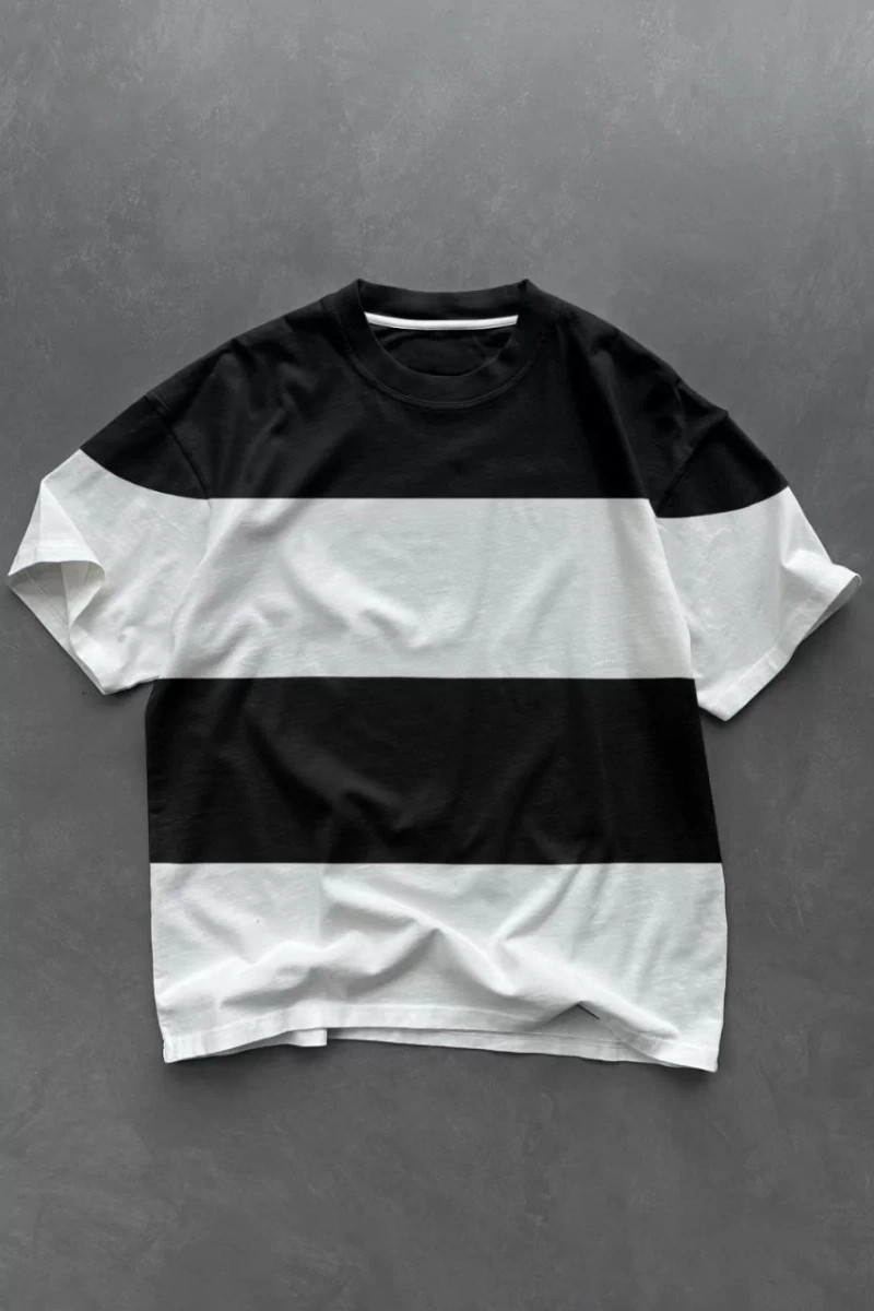 Unisex Bisiklet Yaka Parçalı T-Shirt - Siyah