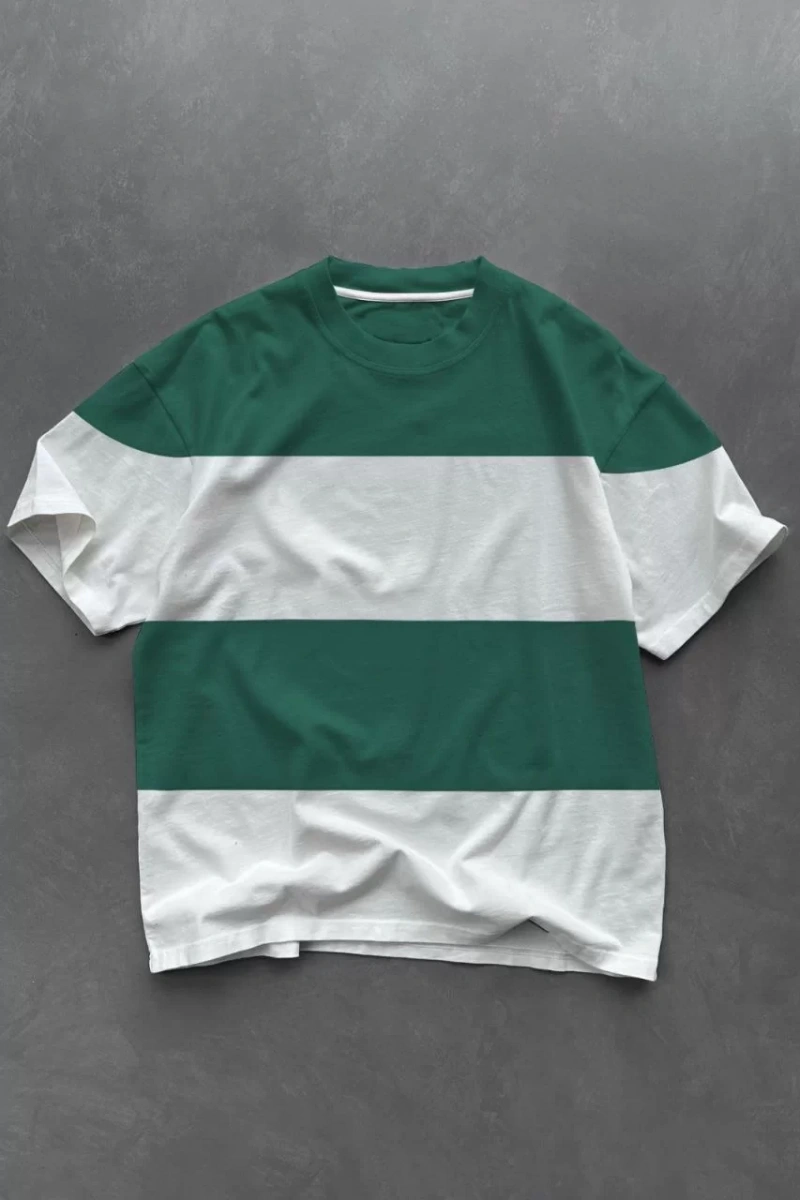 Unisex Bisiklet Yaka Parçalı T-Shirt - Yeşil