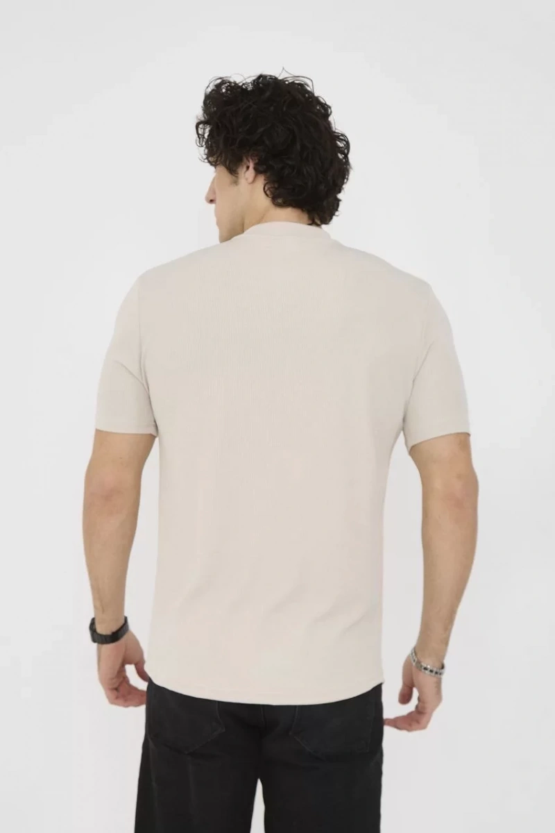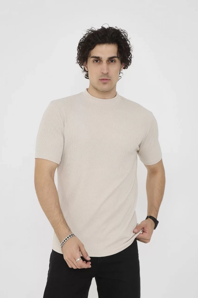 Unisex Bisiklet Yaka Slim fit T-Shirt- Bej