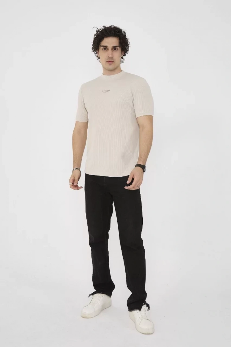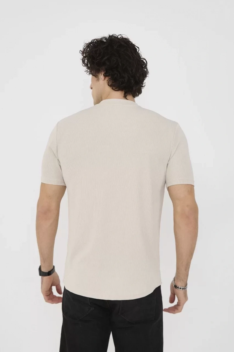 Unisex Bisiklet Yaka Slim fit T-Shirt- Bej