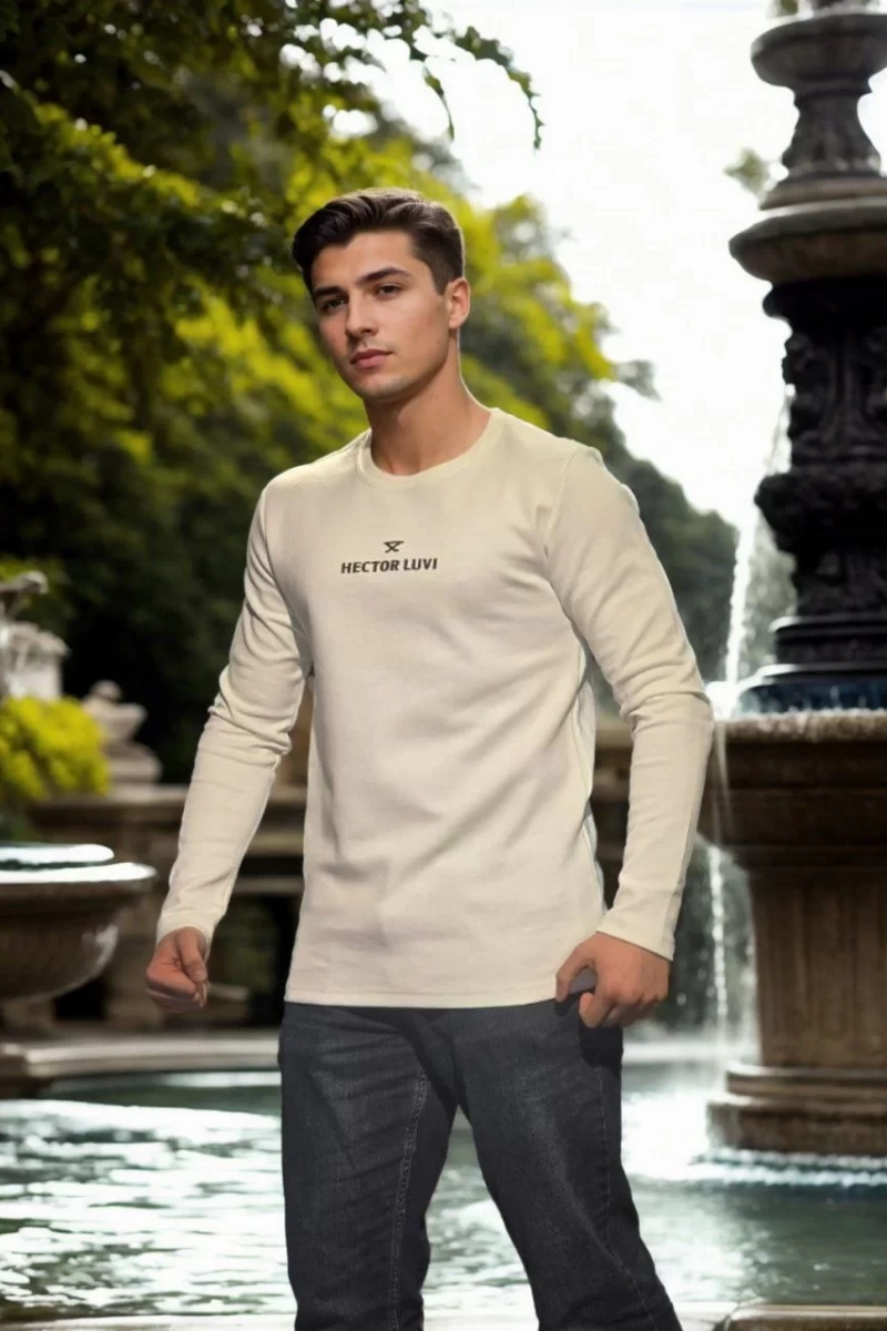 Unisex Bisiklet Yaka Uzun Kollu T-Shirt - Beyaz
