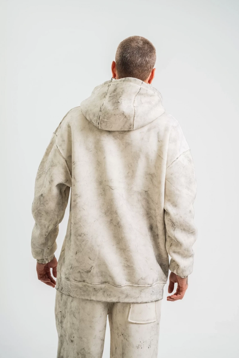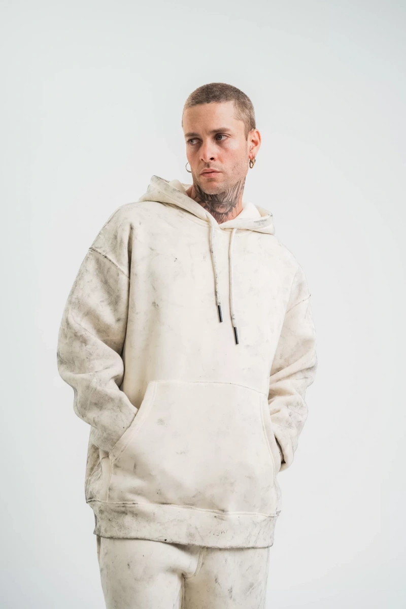 Unisex Double Oversize Kapşonlu Yıkamalı SweatShirt - Krem