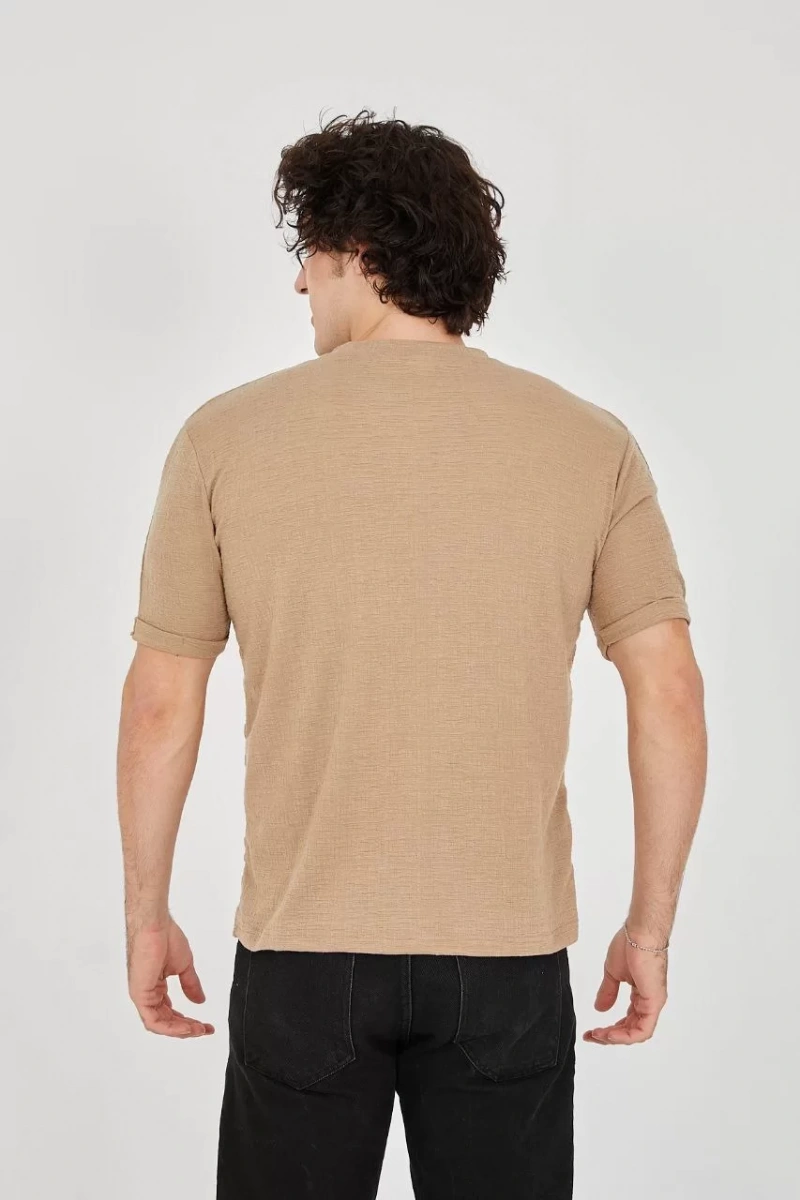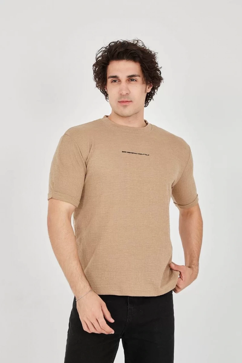 Unisex Jakar Kumaş Slim Fit T-Shirt - Kahverengi