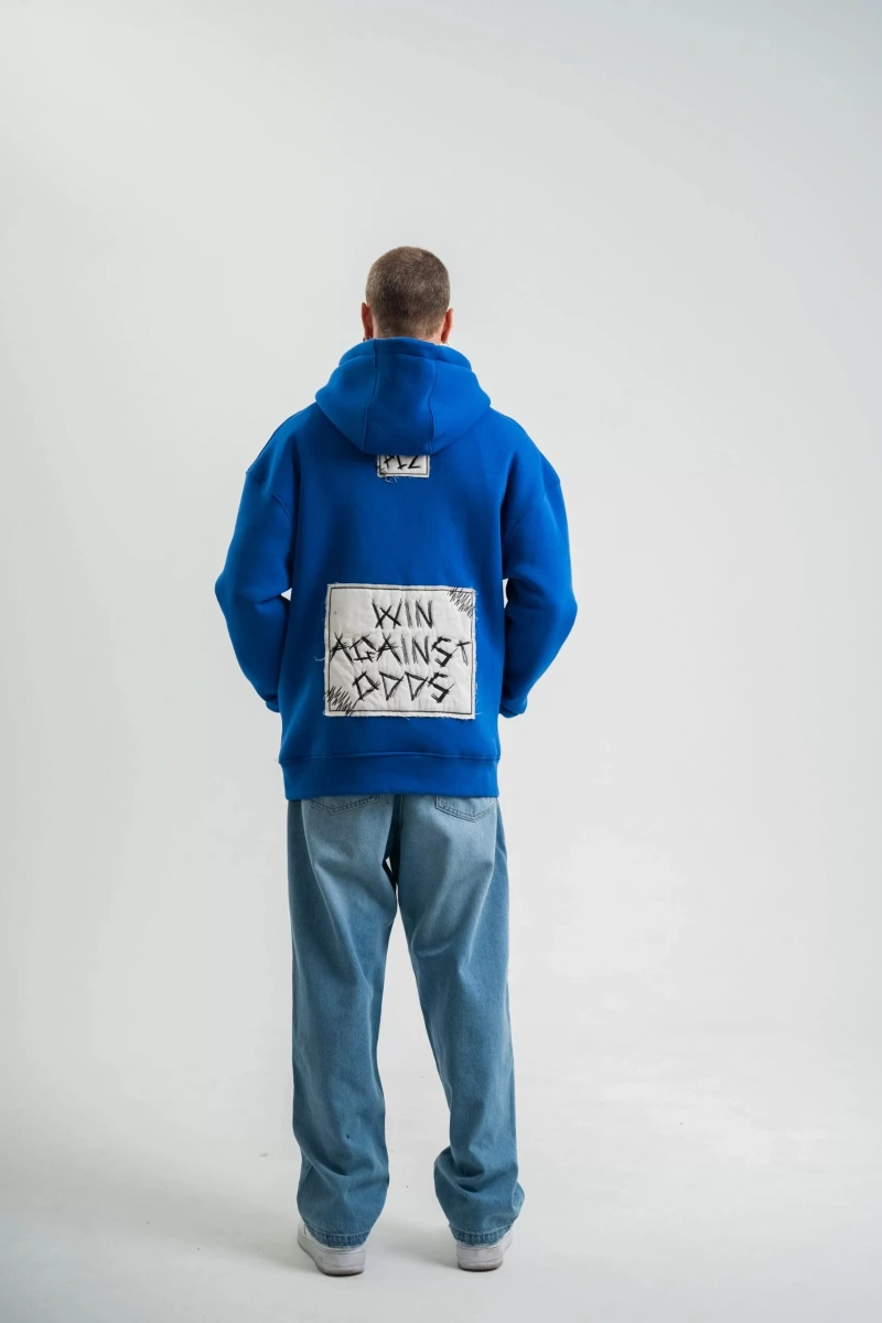 Unisex Kapşonlu Uzun Kol Patchli Nakışlı SweatShirt - Mavi