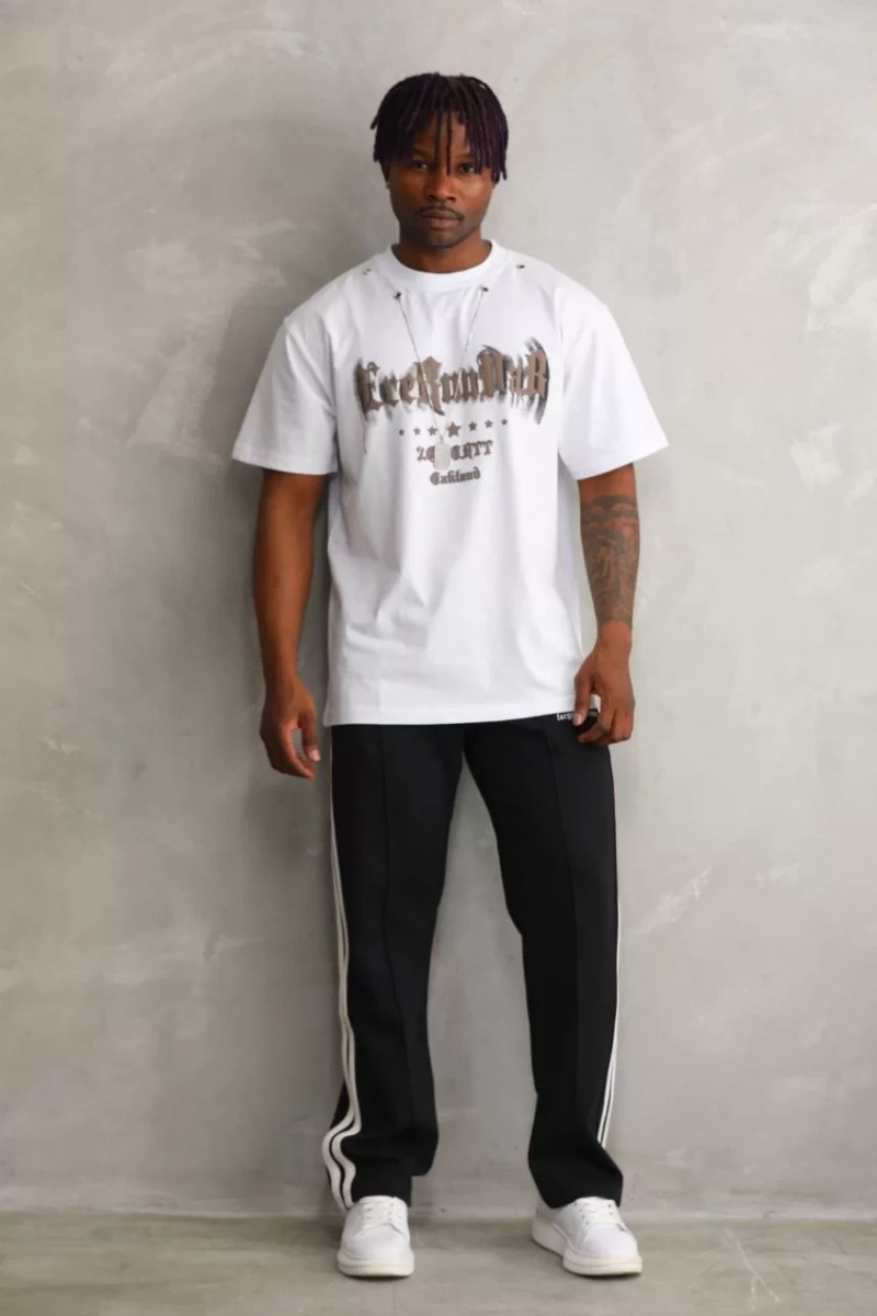 Unisex Oversize Kolye Dahil T-Shirt - Beyaz