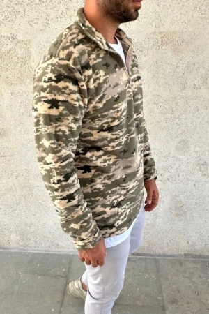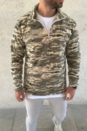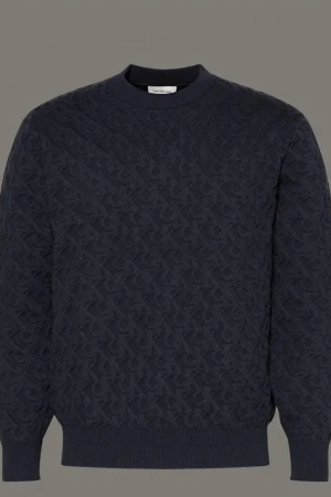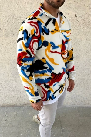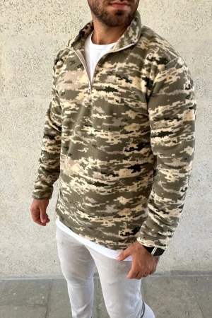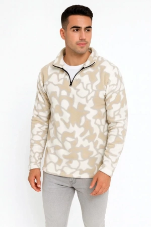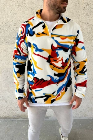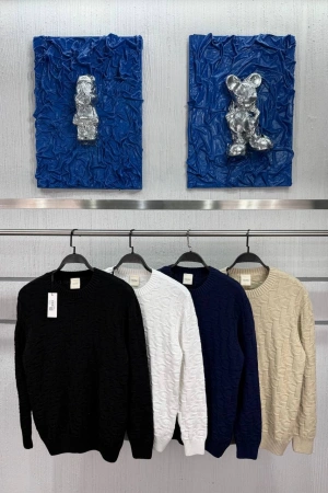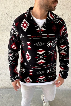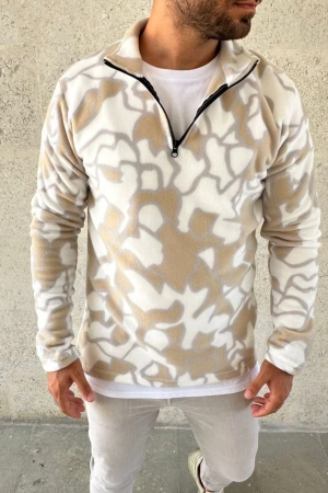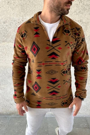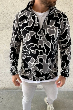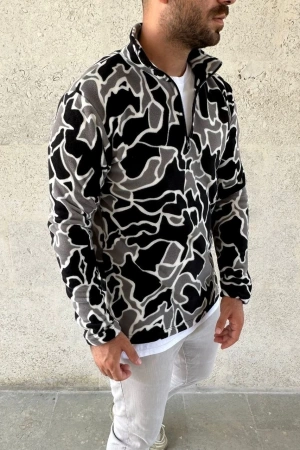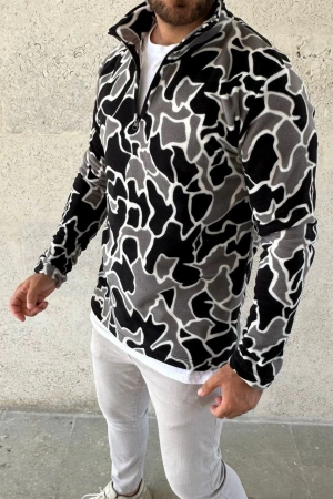 Unisex Yarım Boğazlı Baskılı Dokuma Triko - Füme