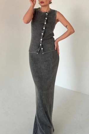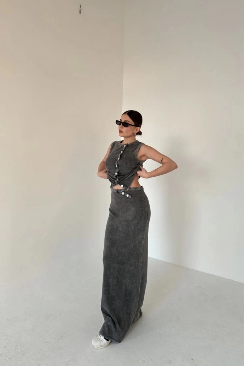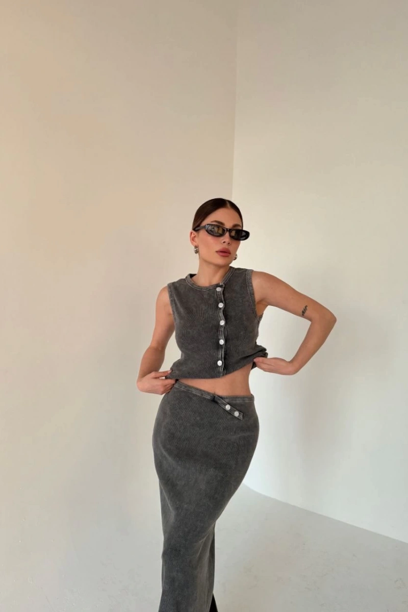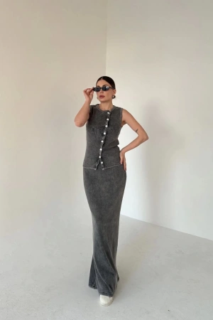 Uzun Etekli Önü Düğmeli Badi İkili Takım- Antrasit