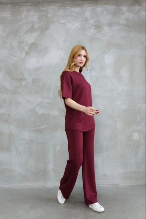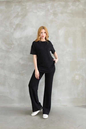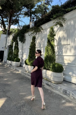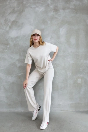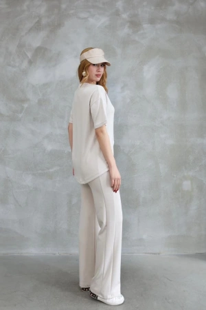 Yakalı Düğmeli Uzun Kollu Gömlek Pantolon ikili Takım - Bej