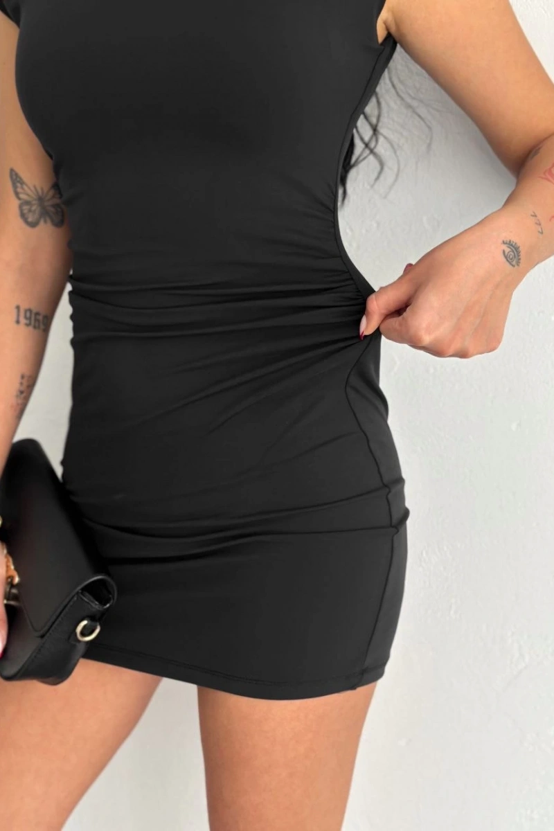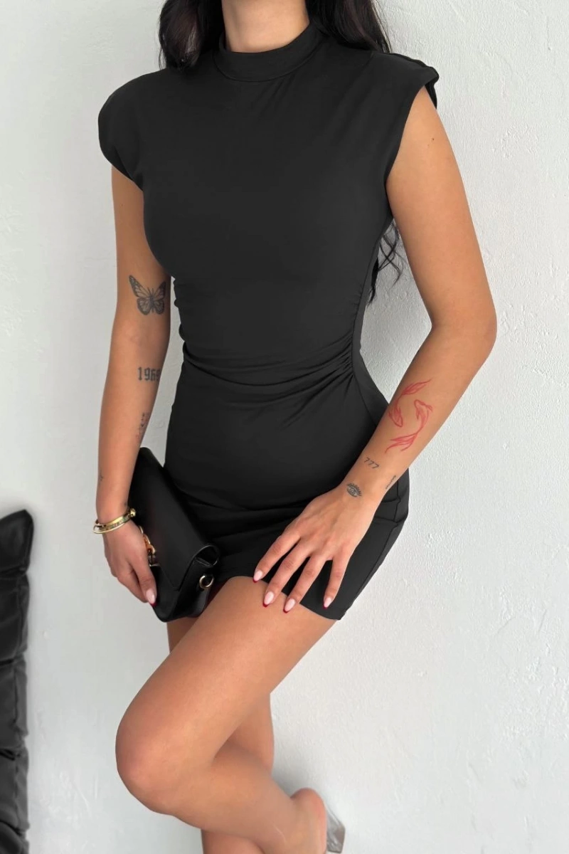 Yarım Bogazlı Kolsuz Mini Boy Elbise - Siyah