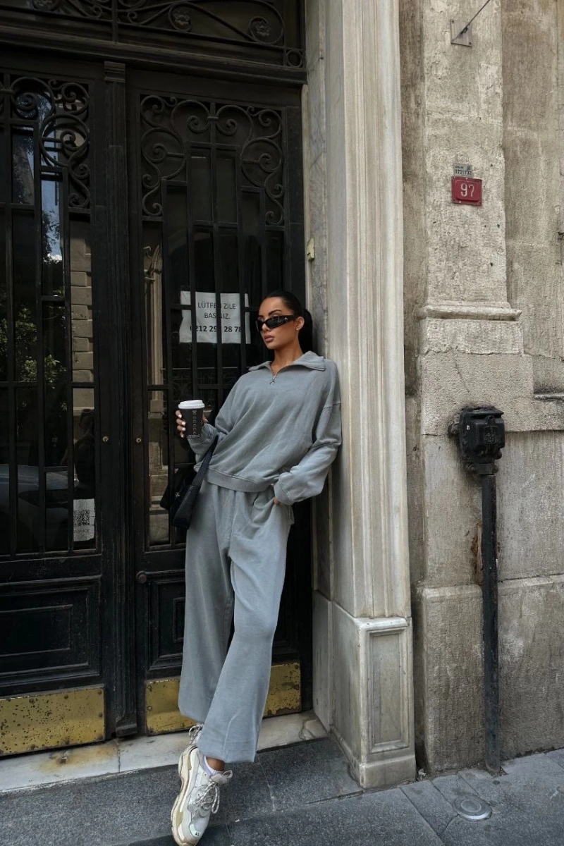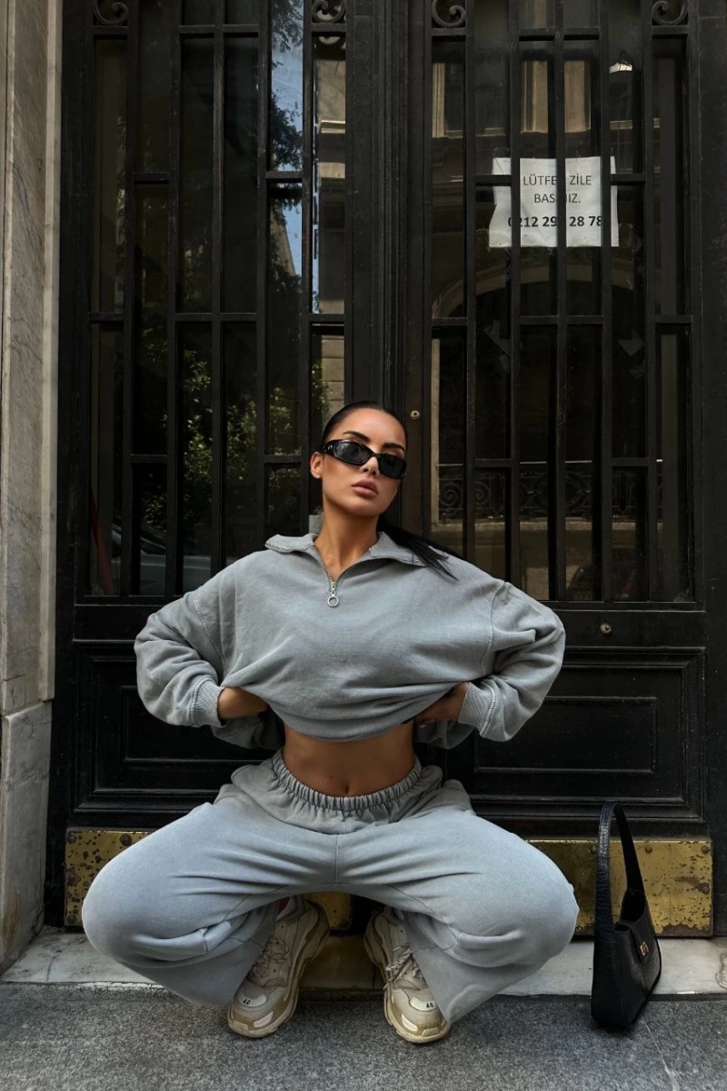 • - Sweatshirt ve pantolon olmak üzere iki parçadan oluşan