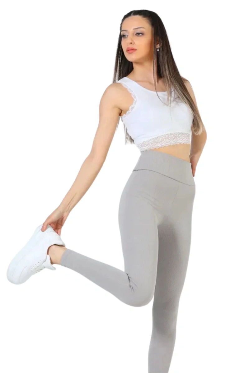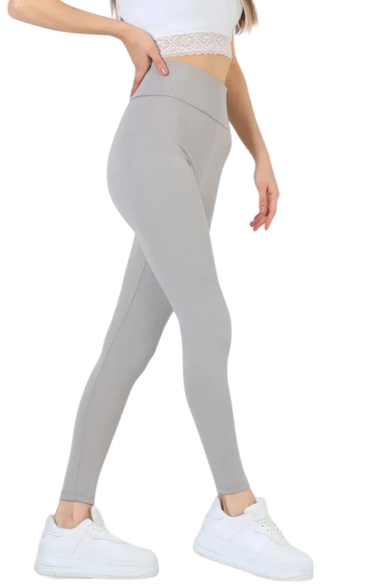 Yüksek Bel Fitilli Toparlayıcılı Açık Gri Tayt