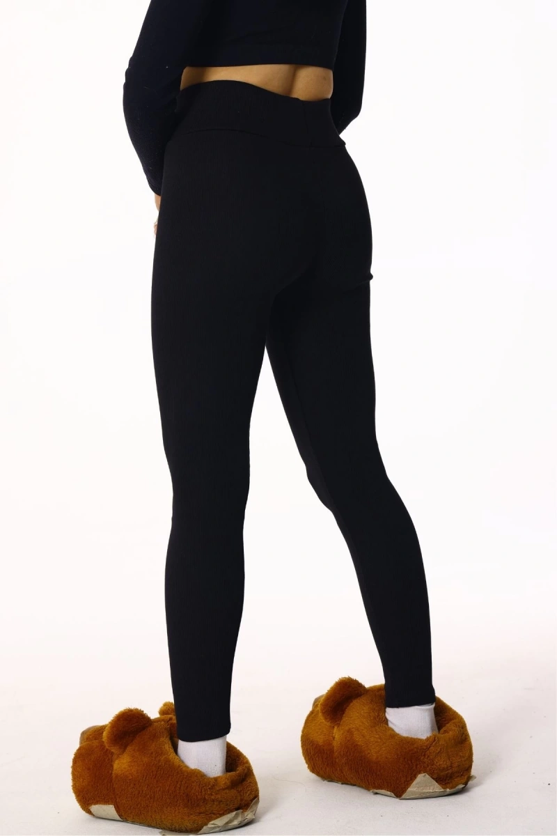 Yüksek Bel Fitilli Toparlayıcılı Siyah Tayt