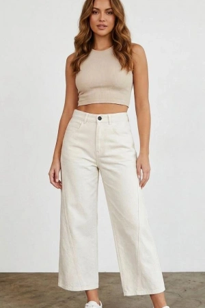 Kadın Geniş Paça Yüksek Bel Kot Pantolon - Beyaz