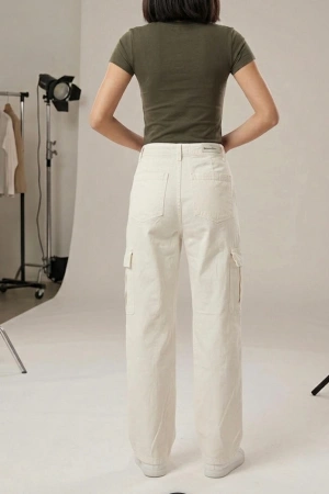 Kadın Boru Paça Kargo Pantolon - Beyaz