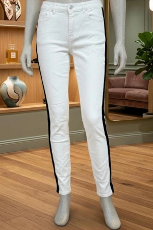Kadın Siyah Şeritli Slim Fit Pantolon - Beyaz