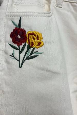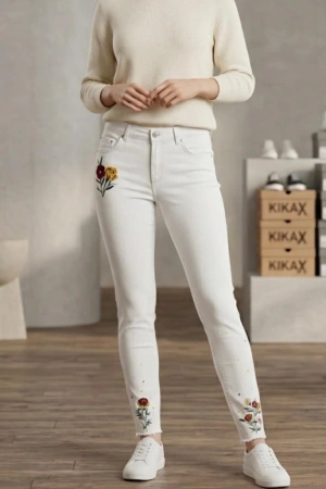 Kadın Dar Kesim İşlemeli Kot Pantolon -Beyaz