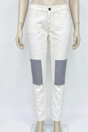 Kadın Dar Kalıp Diz Desenli Kot Pantolon - Beyaz