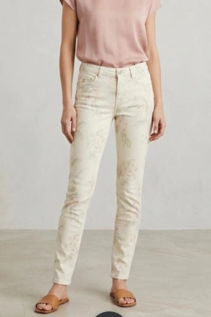 Kadın Desenli Dar kesim Likralı Kot Pantolon - Beyaz